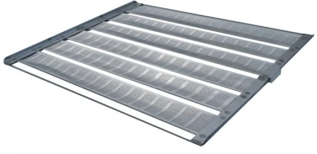 Hay diferentes tipos de bandejas, hechas de diferentes materiales y con diferentes formas para diferentes propósitos, como las bandejas con agujeros, que permiten a la masa crear una corteza en su superficie.